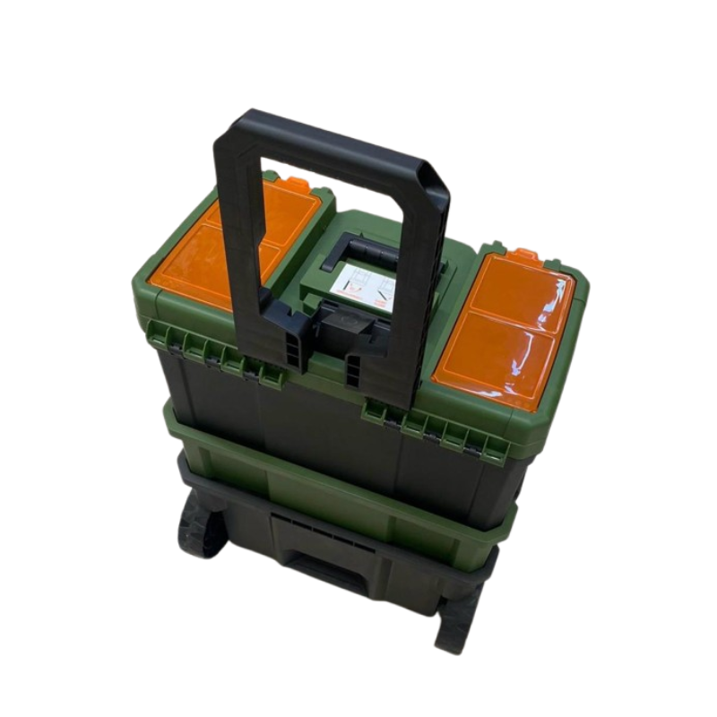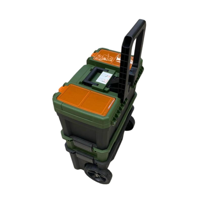 F188D – Ferramenta para Armazenamento Modelo com 3 Caixas Plásticas e Carrinho com Rodas e Cabo